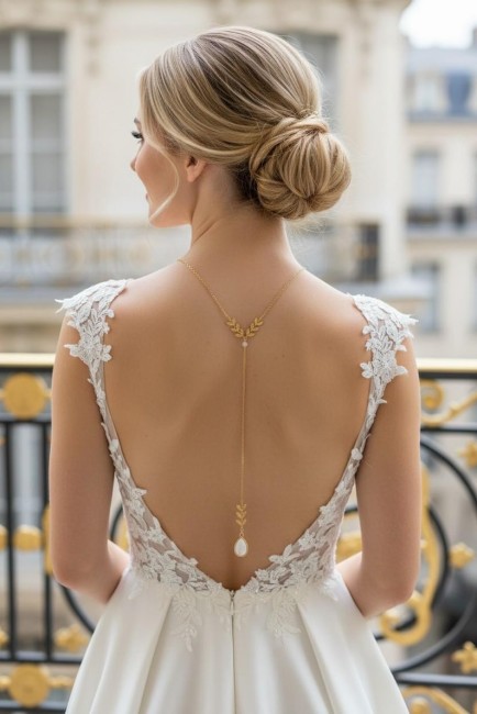 Collier dos mariage or - bijou de dos chaîne originale en acier inoxydable doré - collier dos nu mariage sur mesure fait main Atypique
