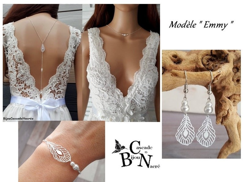 Joli Bracelet à l esprit Bohème chic et contemporain à la fois ce bijou est orné d'un filigrane en forme de " plume de paon" finition laqué blanc en acier inoxydable et d'une fine chaîne argentée, agrémentée de perles nacrées blanches.