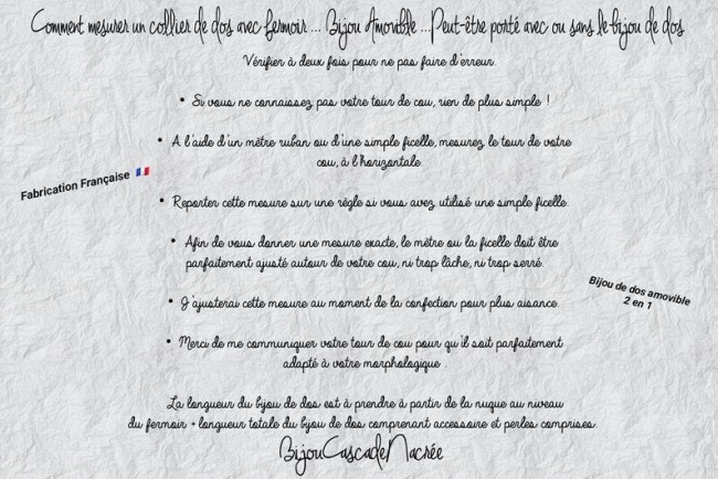 L’avantage de ce collier c est qu’il peut être porté avec ou sans le bijou de dos. Il sera possible de mettre un commentaire lors du passage de commande pour plus de précision.