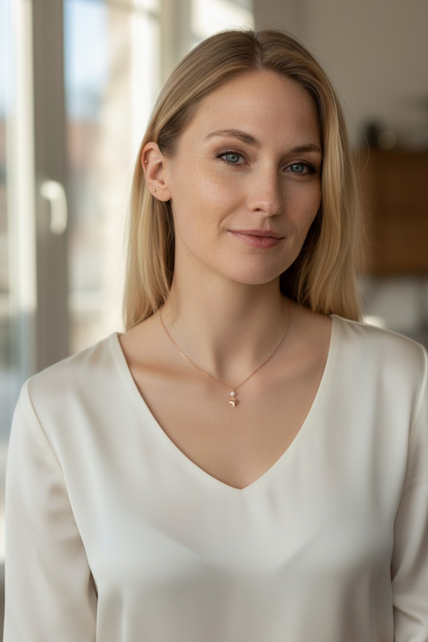Ce collier est fait à partir d'une fine chaine classique en or rose de haute qualité, agrémentée d'un petit coeur et d une minuscule perle nacrée ronde sur le devant du collier tout en simplicité et sa jolie cascade de dos ornée des mêmes éléments.