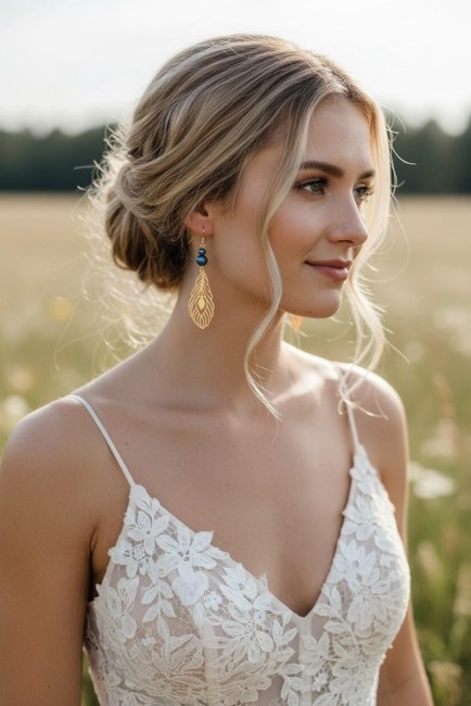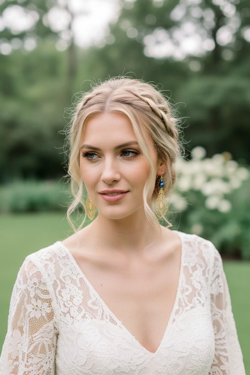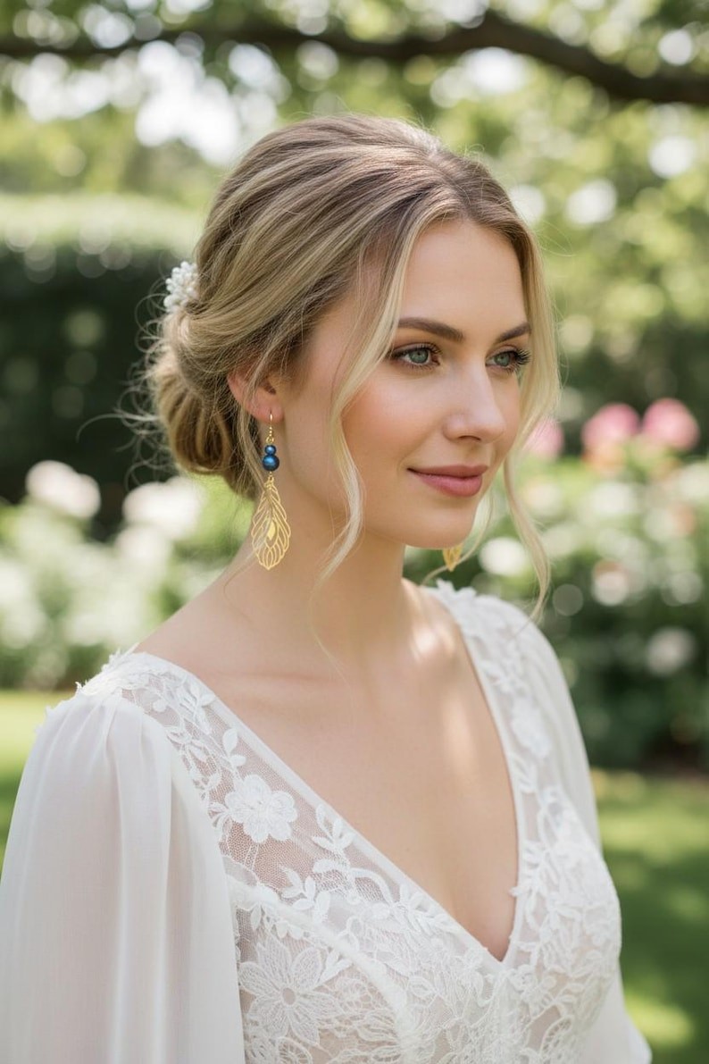 Les boucles d'oreilles assorties sauront illuminer votre port de tête avec raffinement .