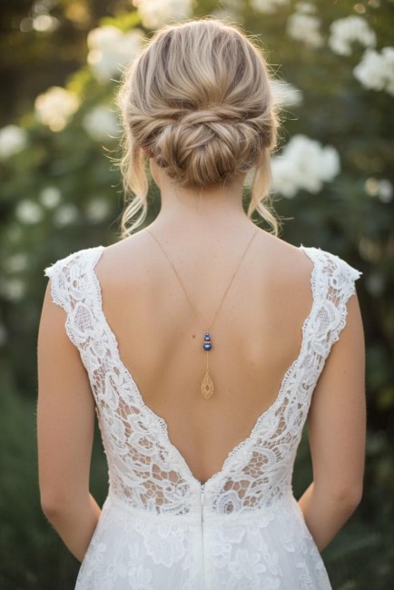 Collier de dos pour mariée 2 en 1