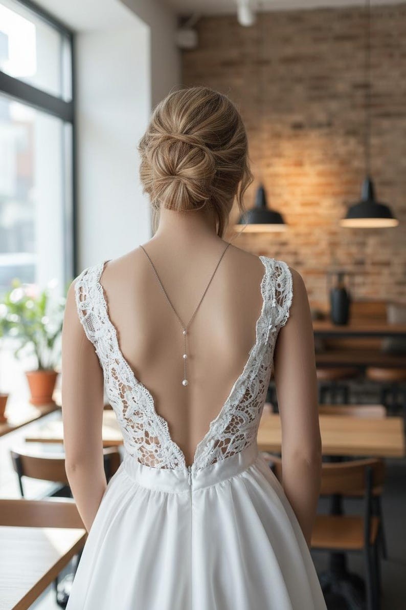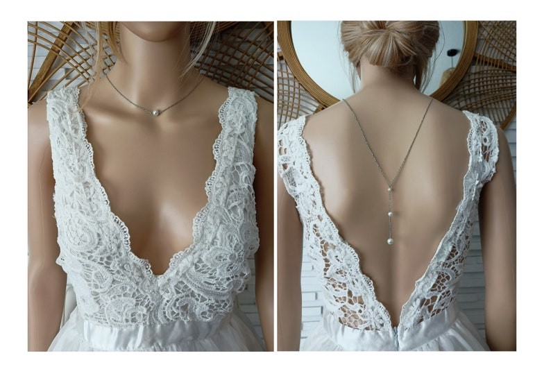 Plein de charme et d'élégance, ce collier de dos possède un design minimaliste dans l'air du temps . Son style épuré avec ses délicates perles nacrées feront de ce bijou l'un de vos accessoires favoris . Cette fine chaine en acier inoxydable argent en maille forçat et ornée d'une subtile perle sur le devant du collier et d une jolie cascade de dos perlée . Dans la même collection je vous propose aussi les boucles d'oreilles et bracelet assortis.