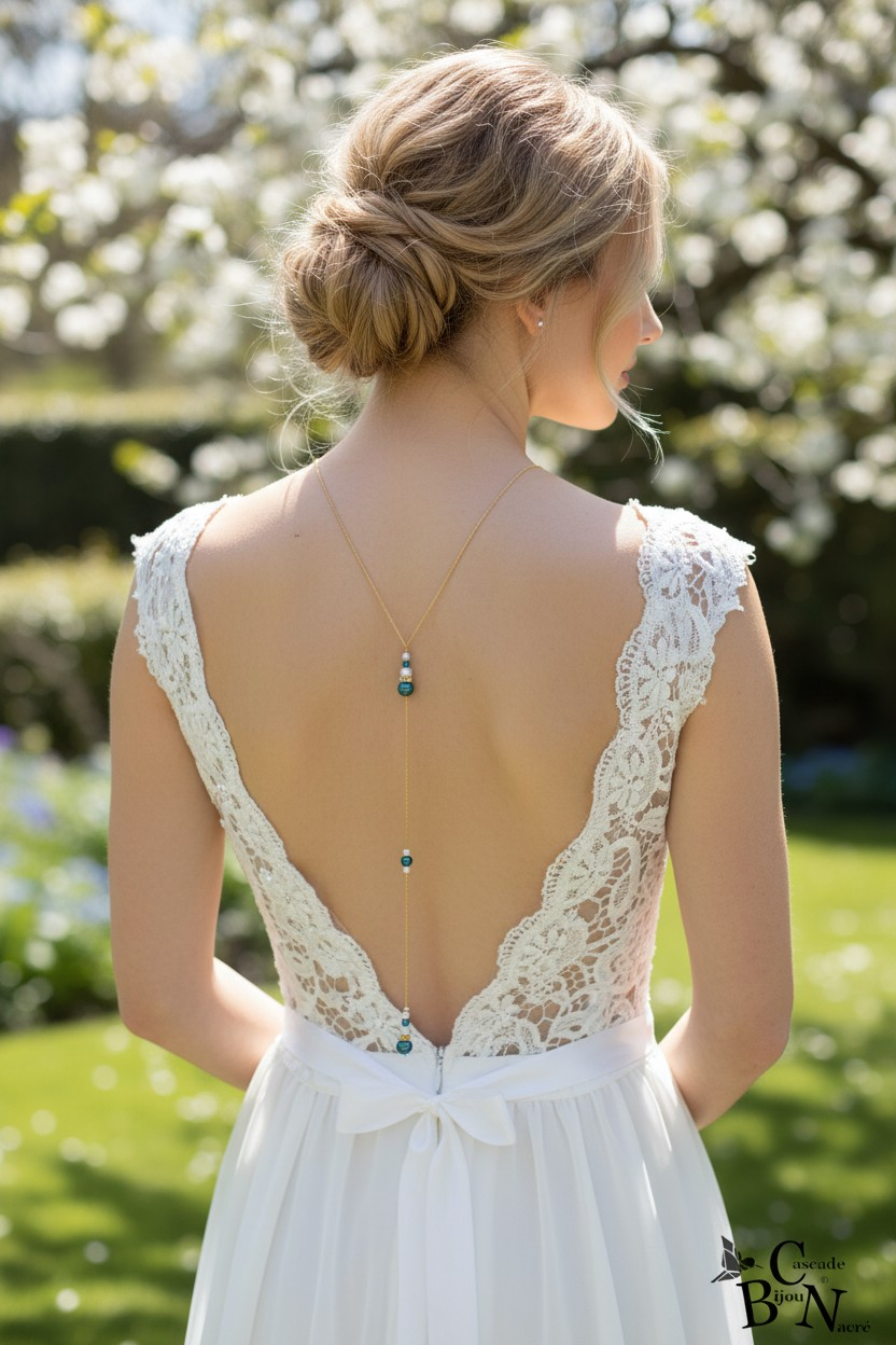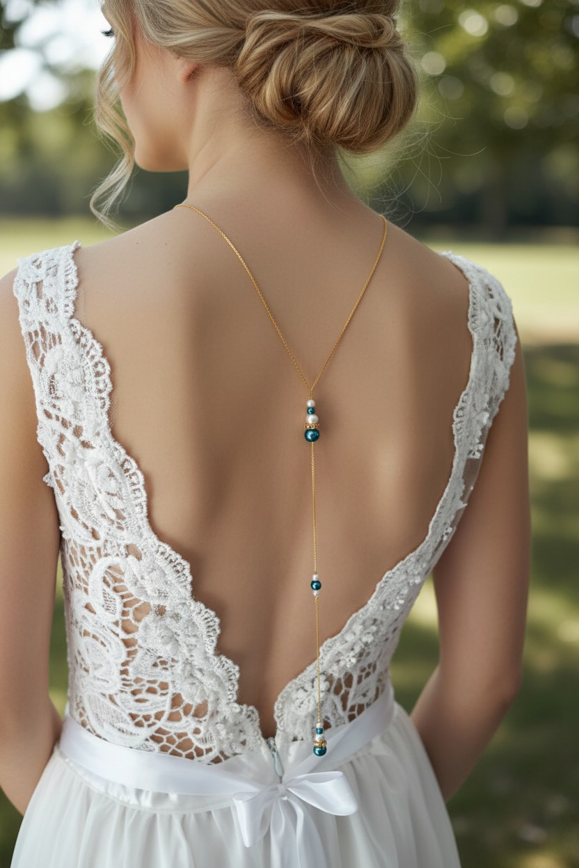 Collier de dos pour mariée 2 en 1