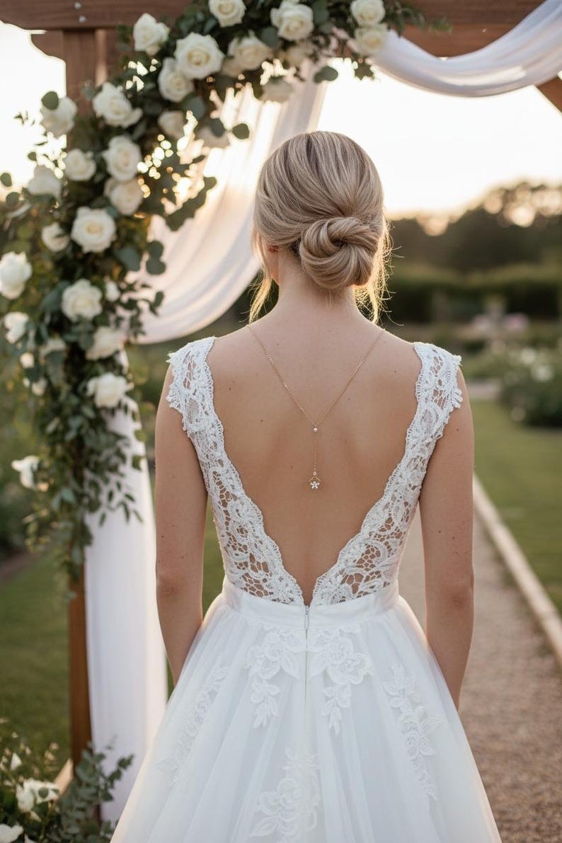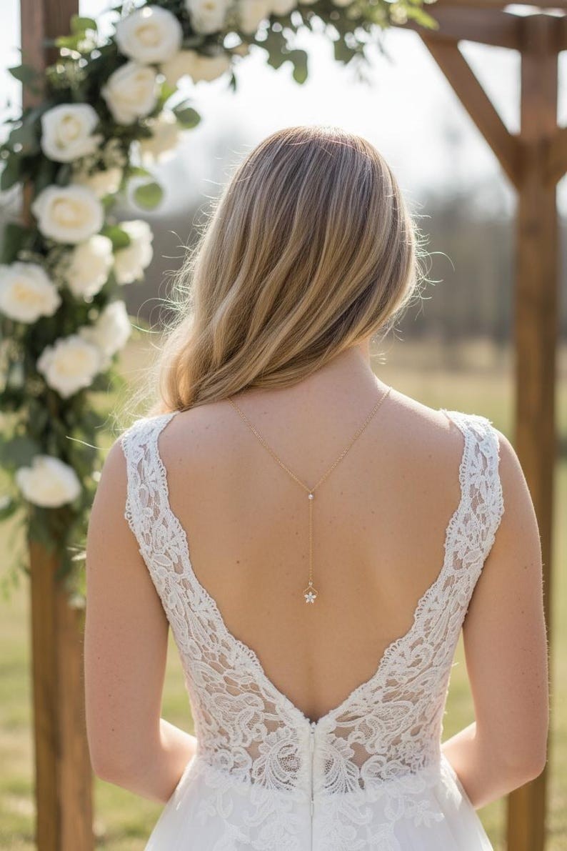 Avec son style Éclatant et épuré ce joli collier de dos saura vous séduire. Il sublimera avec élégance un profond décolleté de dos.