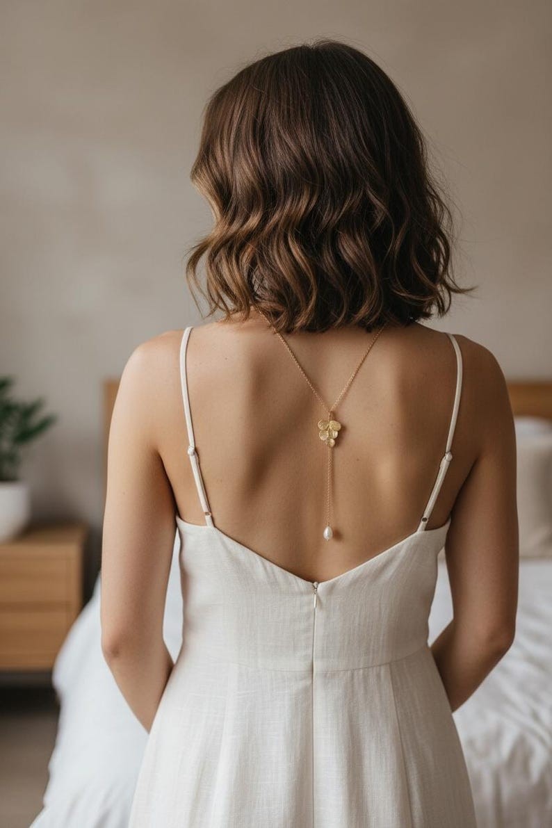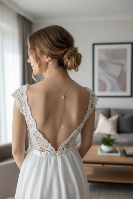 Esprit simple et épuré ce collier saura vous séduire. Il sublimera avec élégance un profond décolleté de dos .