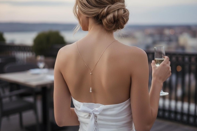 Ce collier est fait à partir d'une fine chaine serpentine en acier inoxydable dorée, agrémentée d'une subtile perle nacrée sur le devant du collier tout en simplicité et sa jolie cascade de dos ornée de perles nacrées blanches