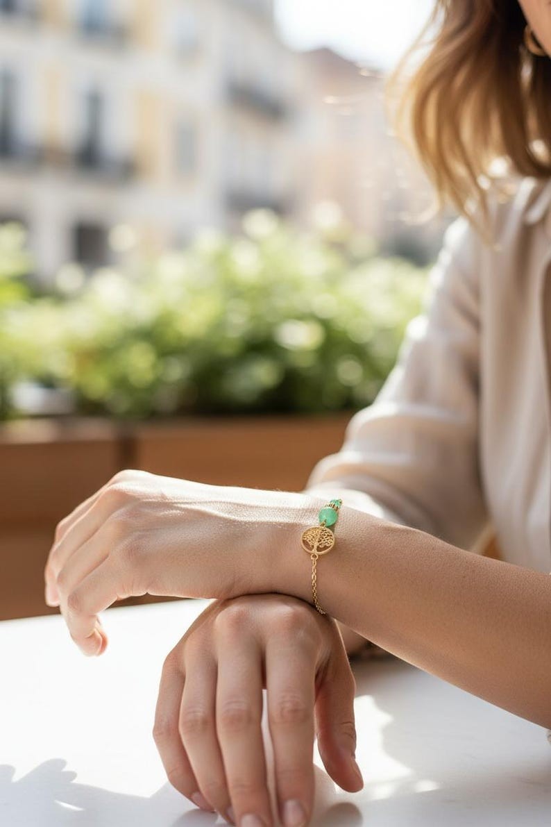 • Filigrane arbre de vie en acier inoxydable doré