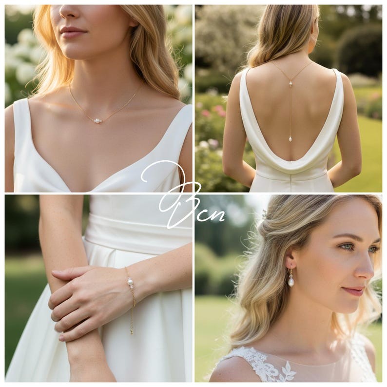 Avec son style minimaliste et épuré cette parure saura vous séduire. Elle sublimera avec élégance un profond décolleté de dos ainsi que votre poignet tout en délicatesse et sans oublier cette jolie Paire de boucles d’oreilles associées.