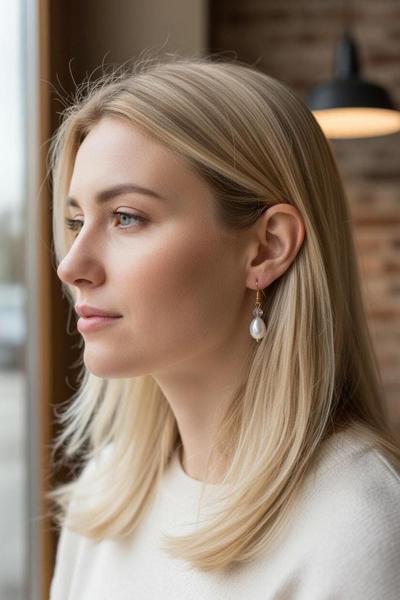 Parure conçue avec une fine chaîne classique en acier et perles de verre nacrées.