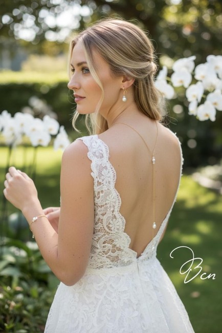 Elle sublimera avec élégance un profond décolleté de dos ainsi que votre poignet tout en délicatesse et sans oublier cette jolie petite Paire de boucles d’oreilles associées.