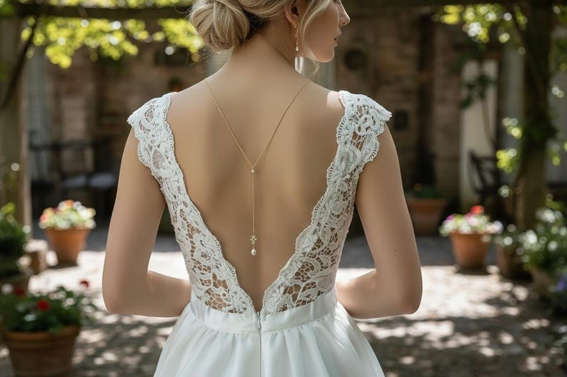 Avec son style Éclatant et épuré ce joli collier de dos saura vous séduire. Il sublimera avec élégance un profond décolleté de dos.