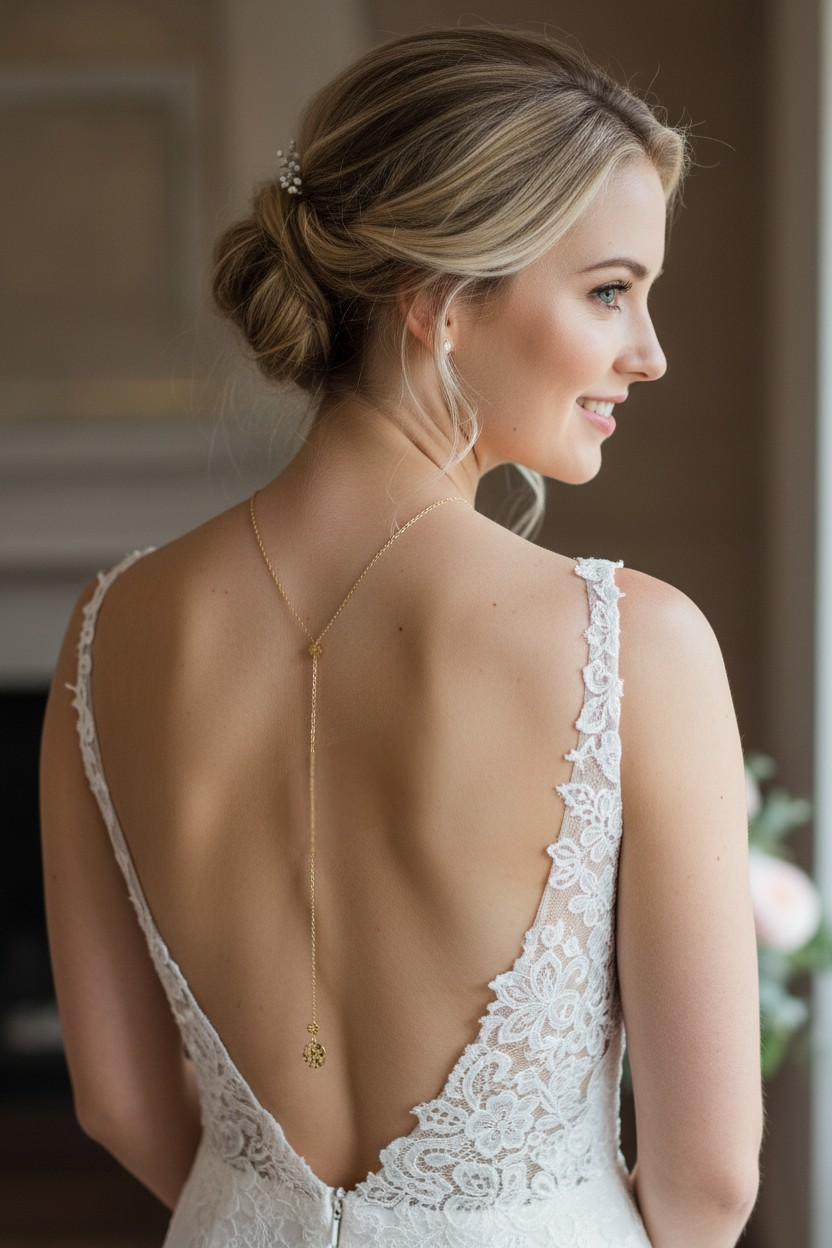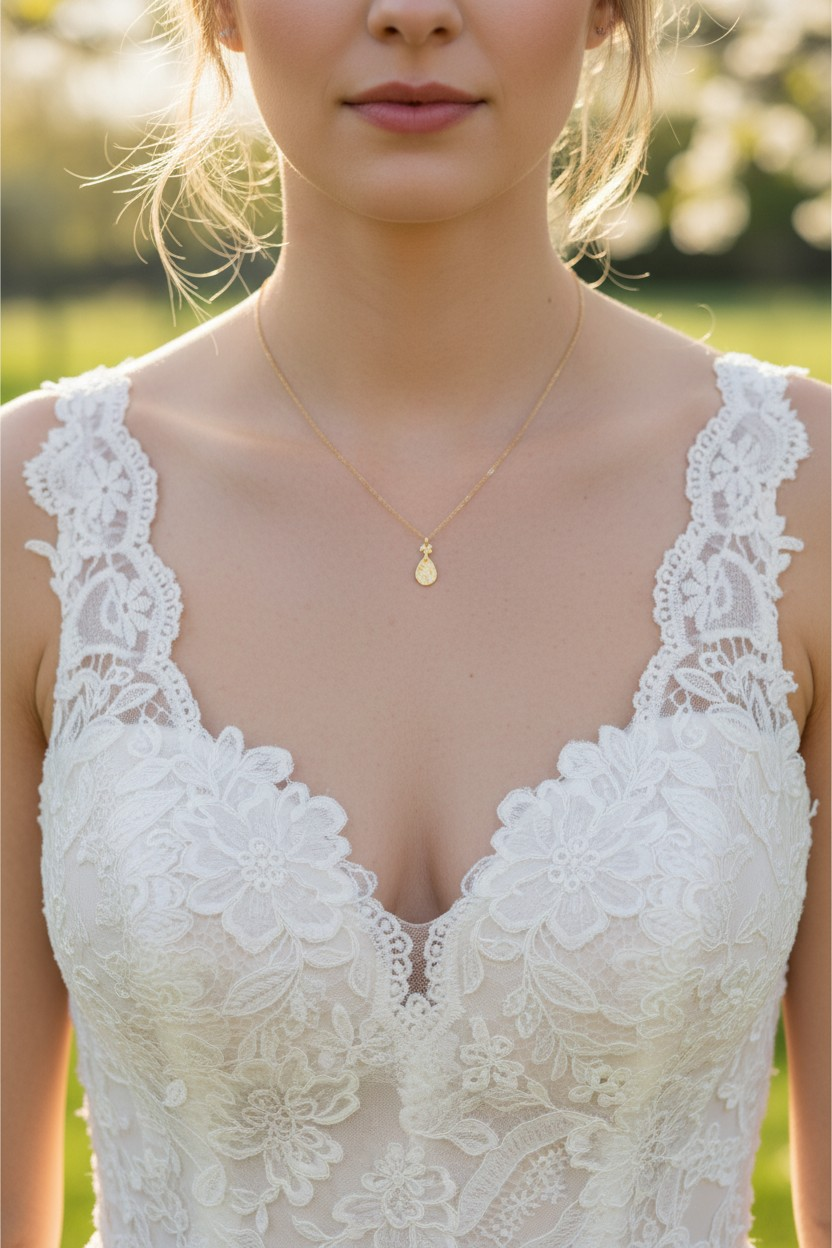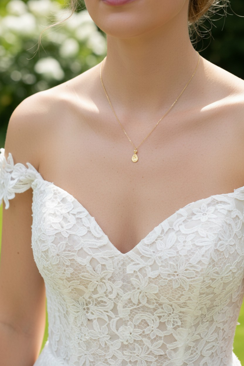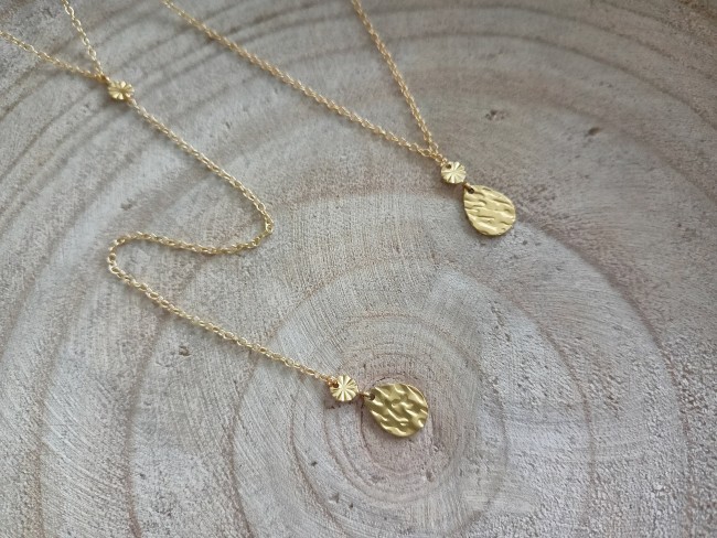 Esprit minimaliste et original ce collier de dos a été pensé et créé à partir d'une fine chaine classique en Gold-filled Or, agrémentée d’une goutte martelée et d’un petit pendentif ciselé en acier inoxydable or .