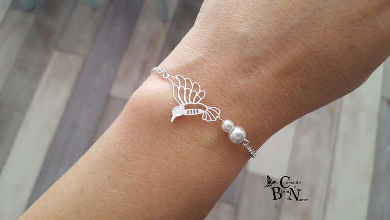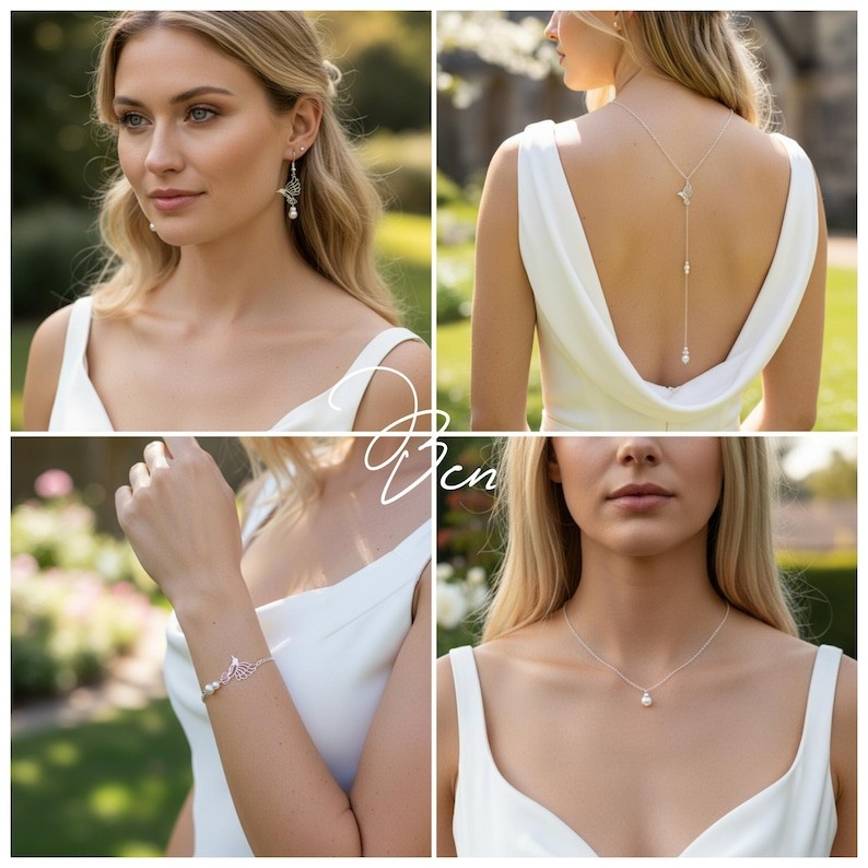 Fait à partir d'une belle chaine argenté de bonne qualité,agrémenté de perles nacrées et cristal de swarovski sur le devant du collier tout en simplicité et sa jolie cascade de dos avec perles nacrées cristal,filigrane en forme de " colombe colibri " finition laqué blanc en acier inoxydable.