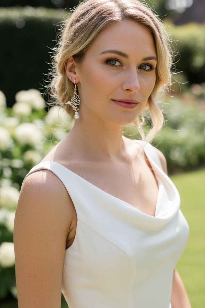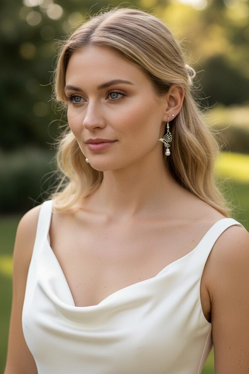 Les boucles d'oreilles assorties sauront illuminer votre port de tête avec raffinement .