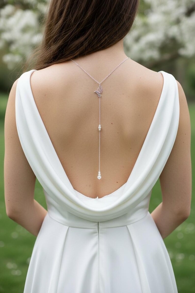La longueur du bijou de dos à partir de la colombe sur le mannequin est entre 28 cm et 30 cm environ " aux choix menu déroulant "