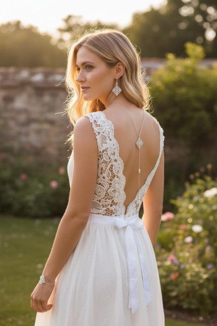 La longueur du bijou de dos à partir du losange sur le mannequin est entre 28 cm et 30 cm environ " aux choix menu déroulant "