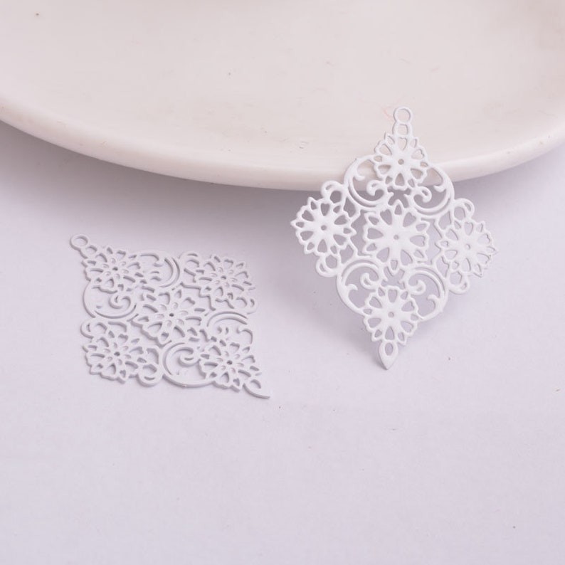 - filigrane en forme de losange baroque arabesque en acier inoxydable finition laqué blanc