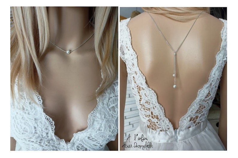 Collier de dos pour mariée 2 en 1