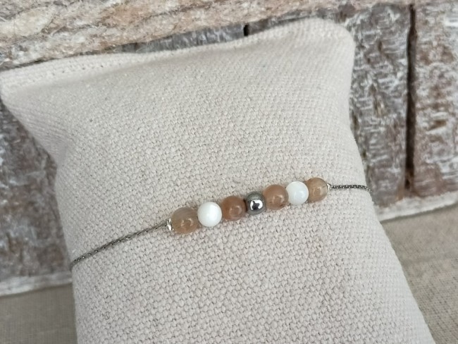 • Pierre de lune et nacre naturelle & Hématite