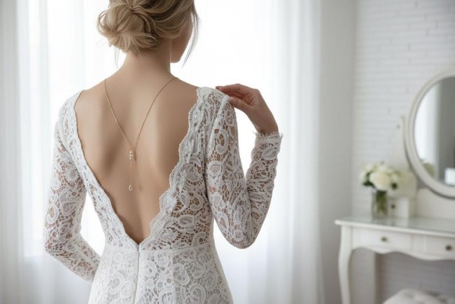 Avec son style Éclatant et épuré ce joli collier de dos saura vous séduire. Il sublimera avec élégance un profond décolleté de dos.