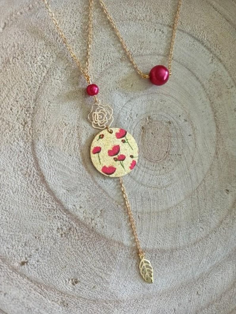 - Pendentif fin émaillé illustration de fleurs coquelicots