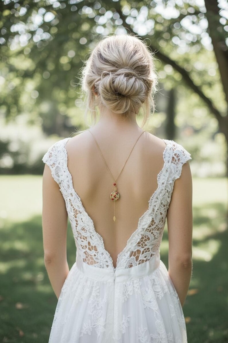 Avec son style Bohème et épuré ce joli collier de dos saura vous séduire. Il sublimera avec élégance un profond décolleté de dos.