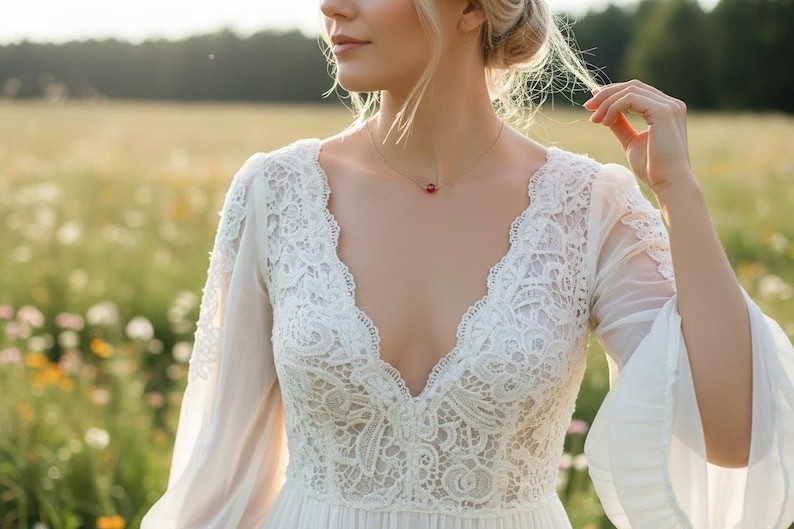 Plusieurs explications peuvent vous aider à faire votre choix {Voir photos} Ce collier est idéal pour une robe bustier avec la meme longueur qui est représentée sur le mannequin .