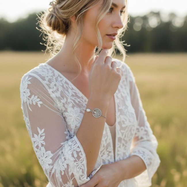 Elle sublimera avec élégance un profond décolleté de dos ainsi que votre poignet tout en délicatesse et sans oublier cette jolie petite Paire de boucles d’oreilles associées.