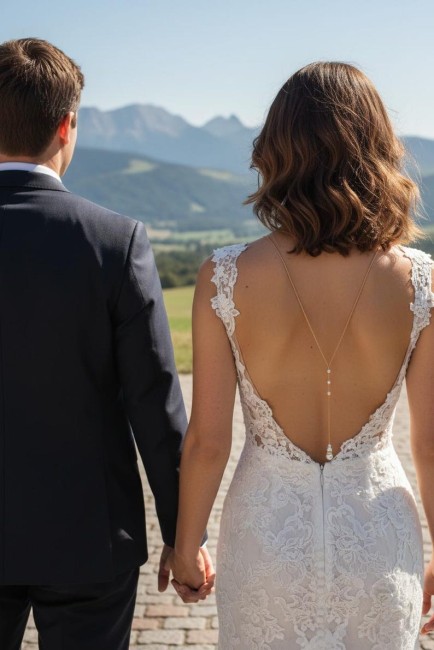 Vous pouvez choisir votre tour de cou sur mesure ainsi que la longueur du bijou de dos amovible.
