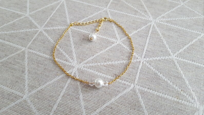 Joli Bracelet fin et délicat à la fois ce bijou est orné d'une fine chaîne à maillons en acier inoxydable, agrémentée d une subtile perle nacrée blanche entourée de deux toupies de cristal de swarovski .