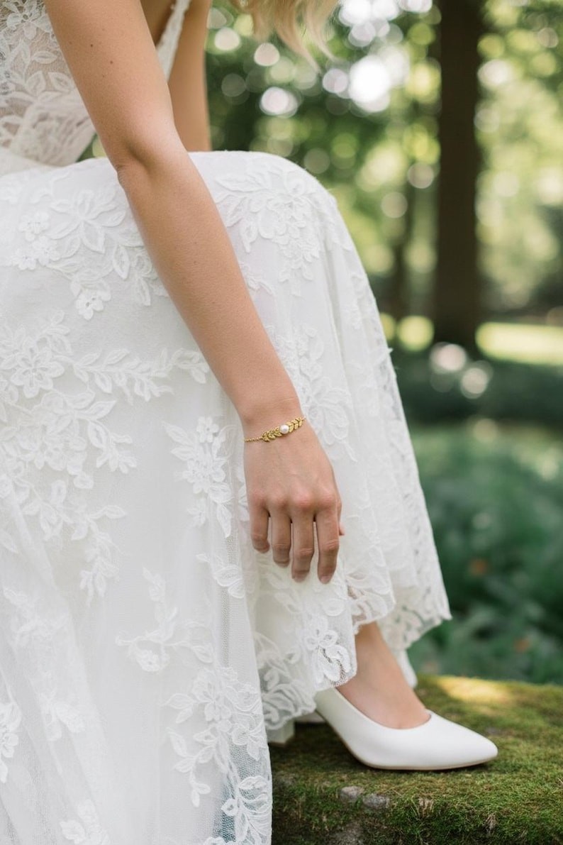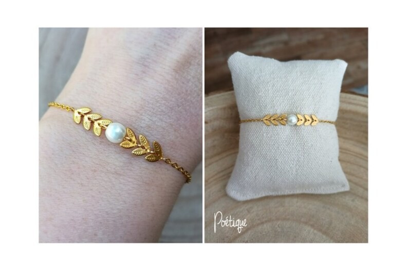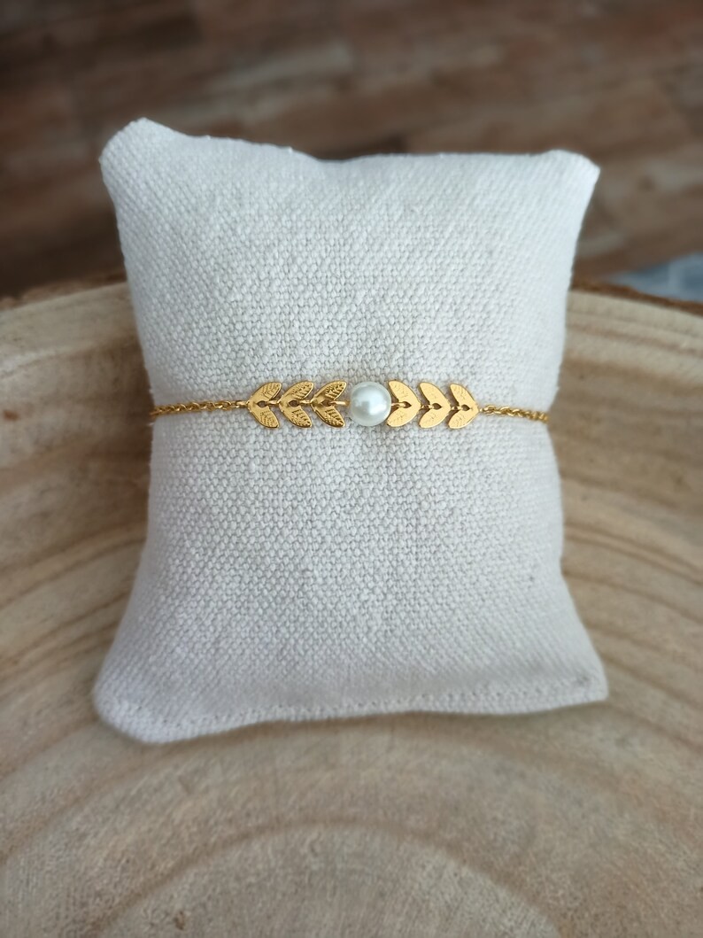 Ce bracelet est réalisé à partir d'une fine chaine classique et d’ épi émaillé agrémentée de plusieurs épis finition perle nacrée blanche diamètre 6mm, Finition en acier inoxydable doré qualité optimale.