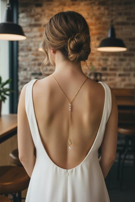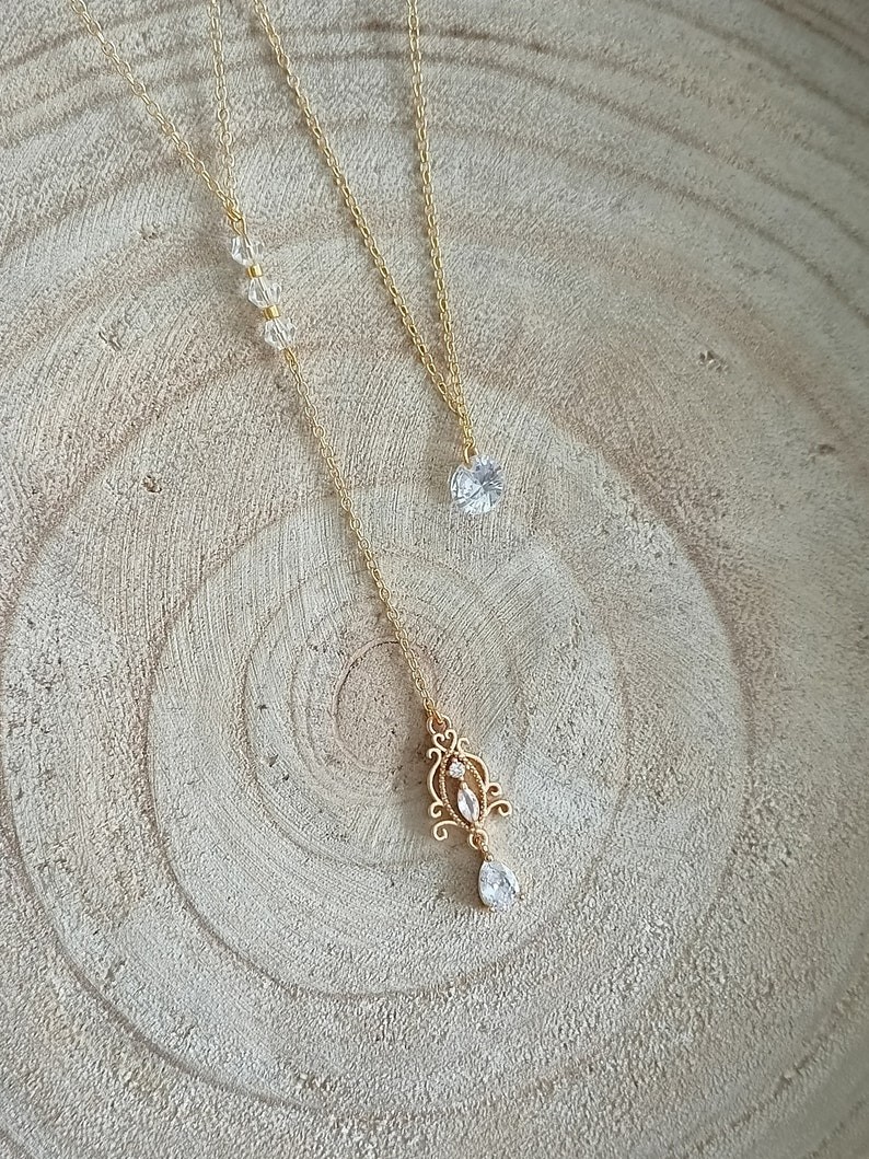 Avec son style oriental et épuré ce joli collier de dos saura vous séduire. Il sublimera avec élégance un profond décolleté de dos.