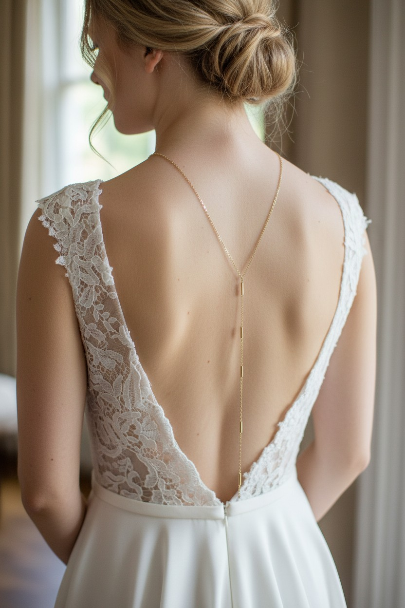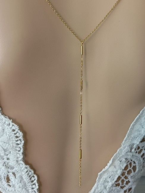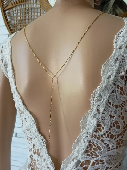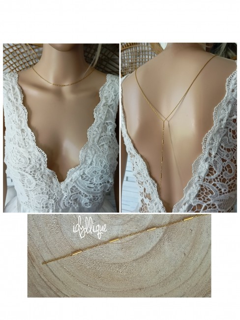 Avec son style contemporain et épuré ce joli collier de dos saura vous séduire. Il sublimera avec élégance un profond décolleté de dos.