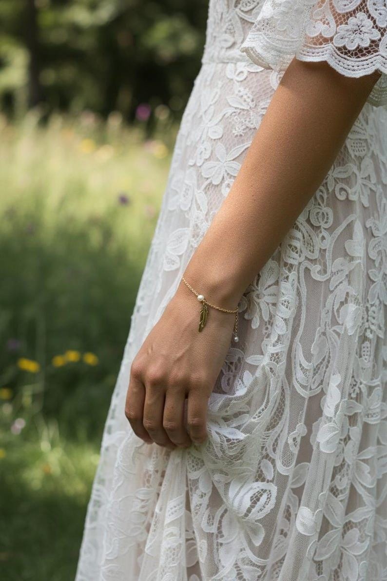 Avec son style Bohème cette parure saura vous séduire. Elle sublimera avec élégance un profond décolleté de dos ainsi que votre poignet tout en délicatesse et sans oublier cette jolie Paire de boucles d’oreilles associées.