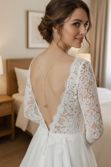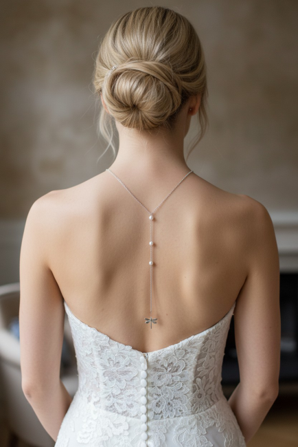 Il sublimera avec élégance un profond décolleté de dos .