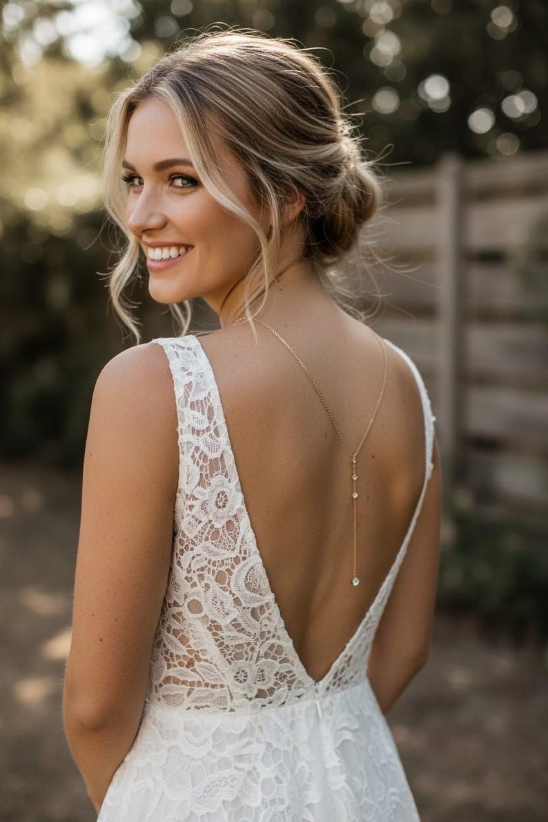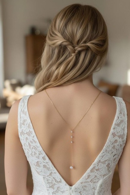 Esprit simple et épuré ce collier de dos a été pensé et créé à partir d'une fine chaine en acier inoxydable doré, agrémentée de plusieurs toupies et pendentifs en cristal de swarovski.