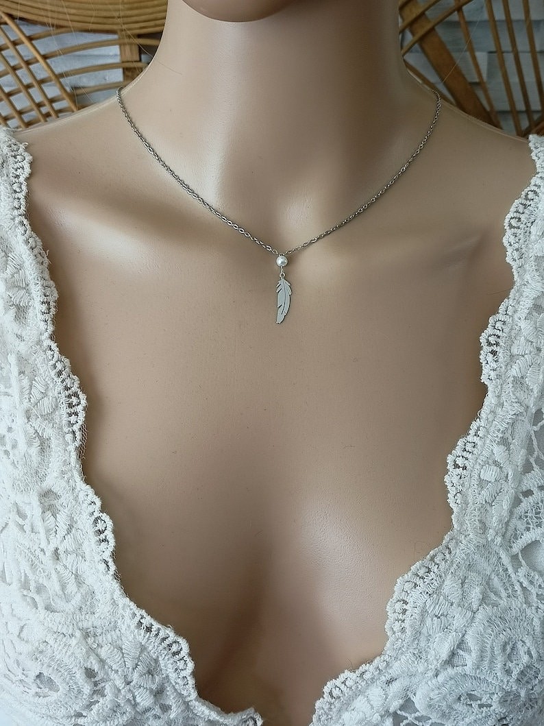 Plusieurs explications peuvent vous aider à faire votre choix {Voir photos} Ce collier est idéal pour une robe bustier avec la meme longueur qui est représentée sur le mannequin .