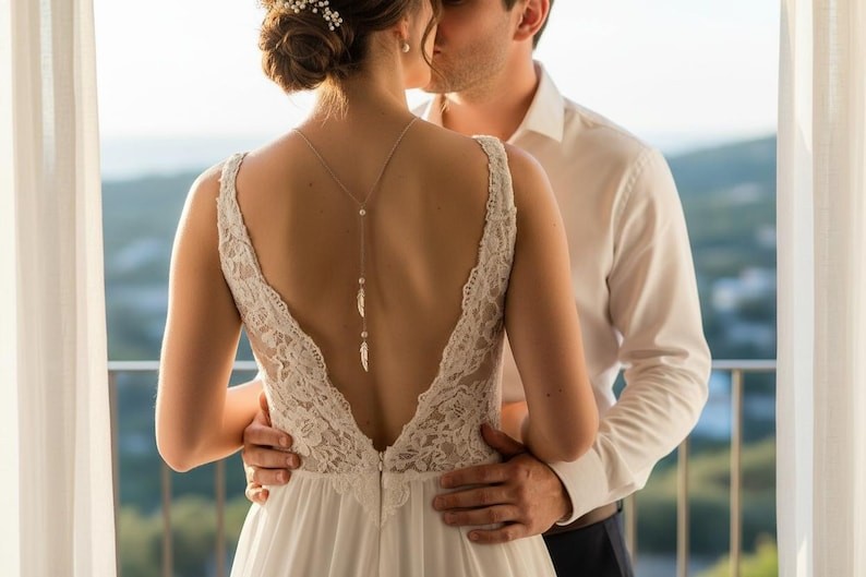 Avec son style Bohème et épuré ce joli collier de dos saura vous séduire. Il sublimera avec élégance un profond décolleté de dos.