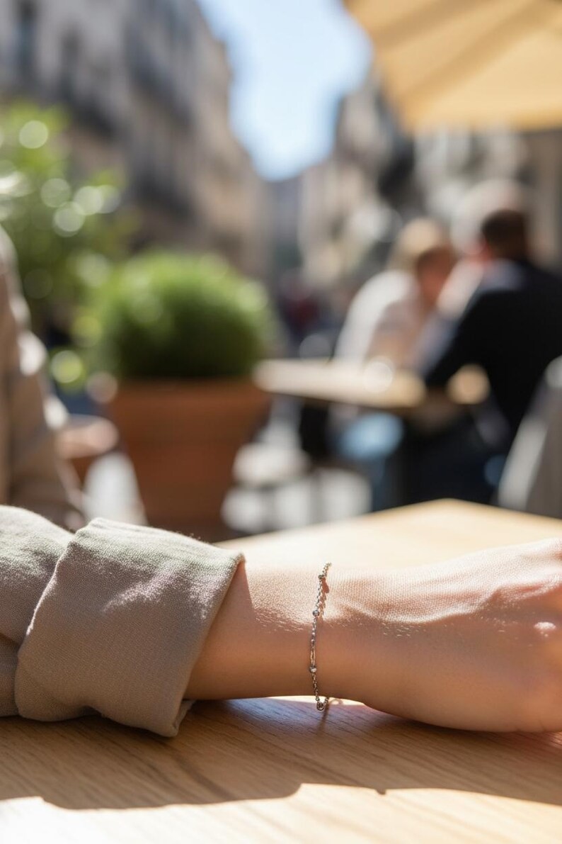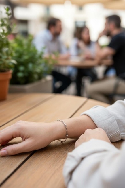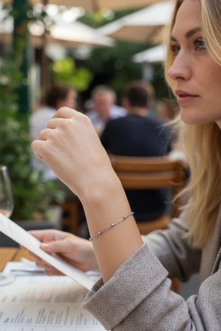 Voici un joli bracelet confectionné d’une fine chaîne argentée tendance.