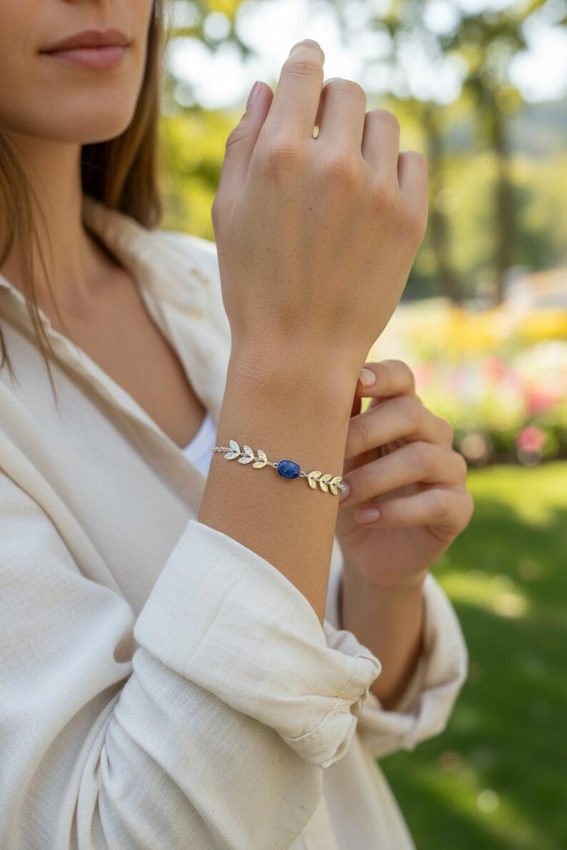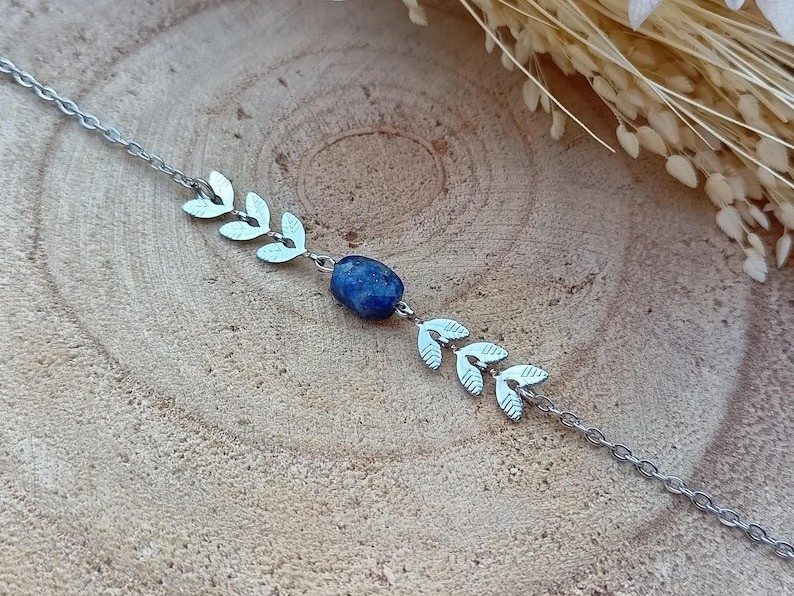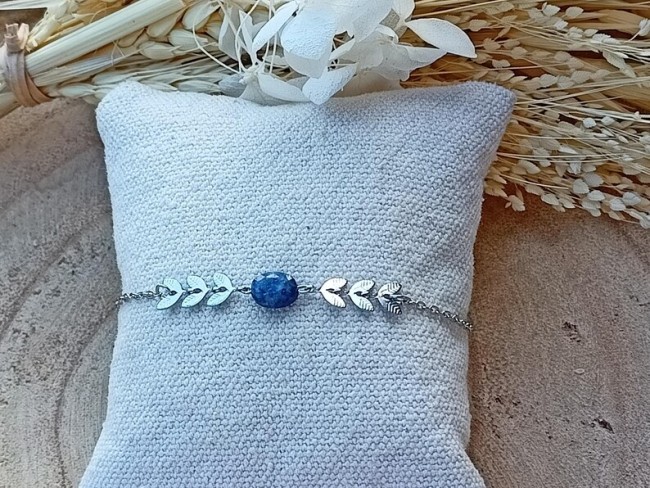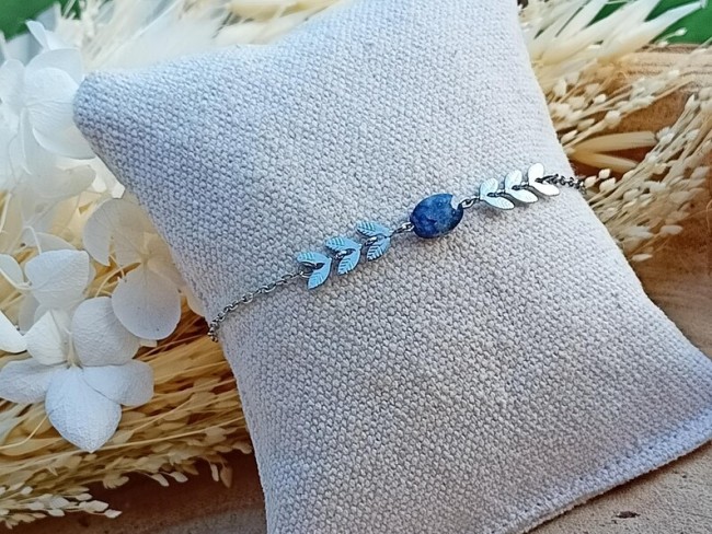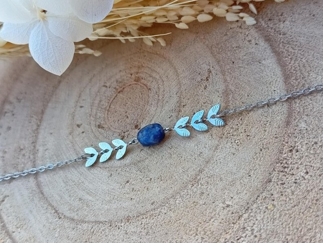 Voici un joli bracelet esprit bohème confectionné d’une fine chaine tendance argentée, d’épis de laurier et ces pierres naturelles. Ce bijou fait main sur mesure est créer dans mon atelier en Normandie.