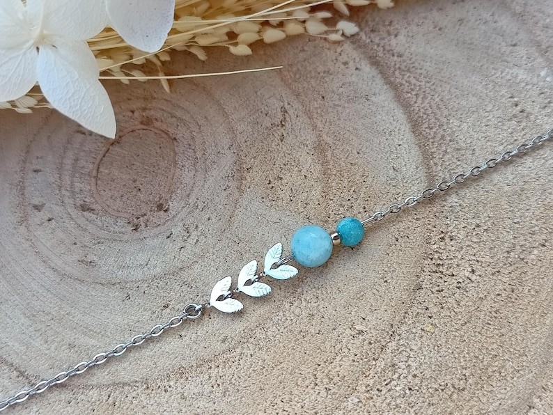 Voici un joli bracelet confectionné d’une fine chaine tendance argentée et ces pierres naturelles. Ce bijou fait main sur mesure est créer dans mon atelier en Normandie.