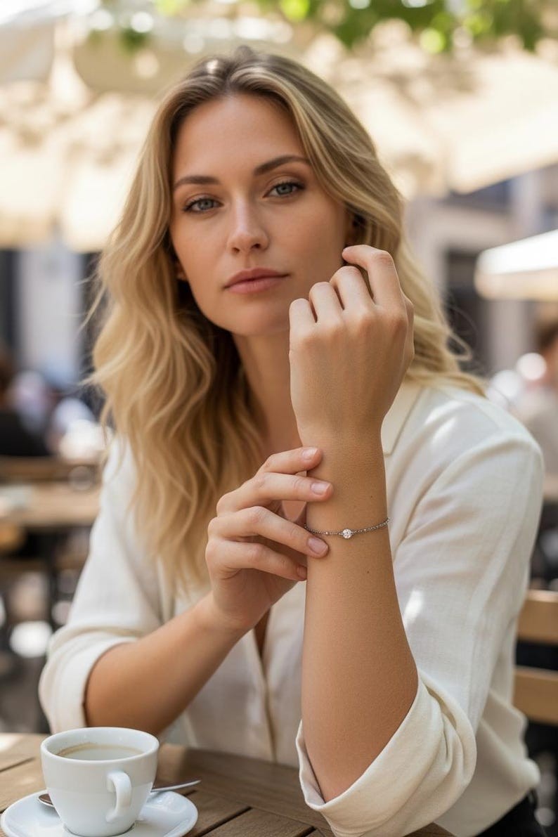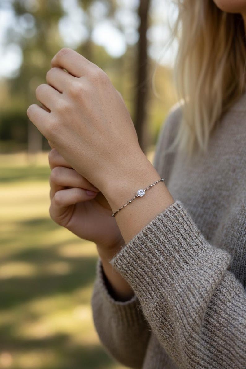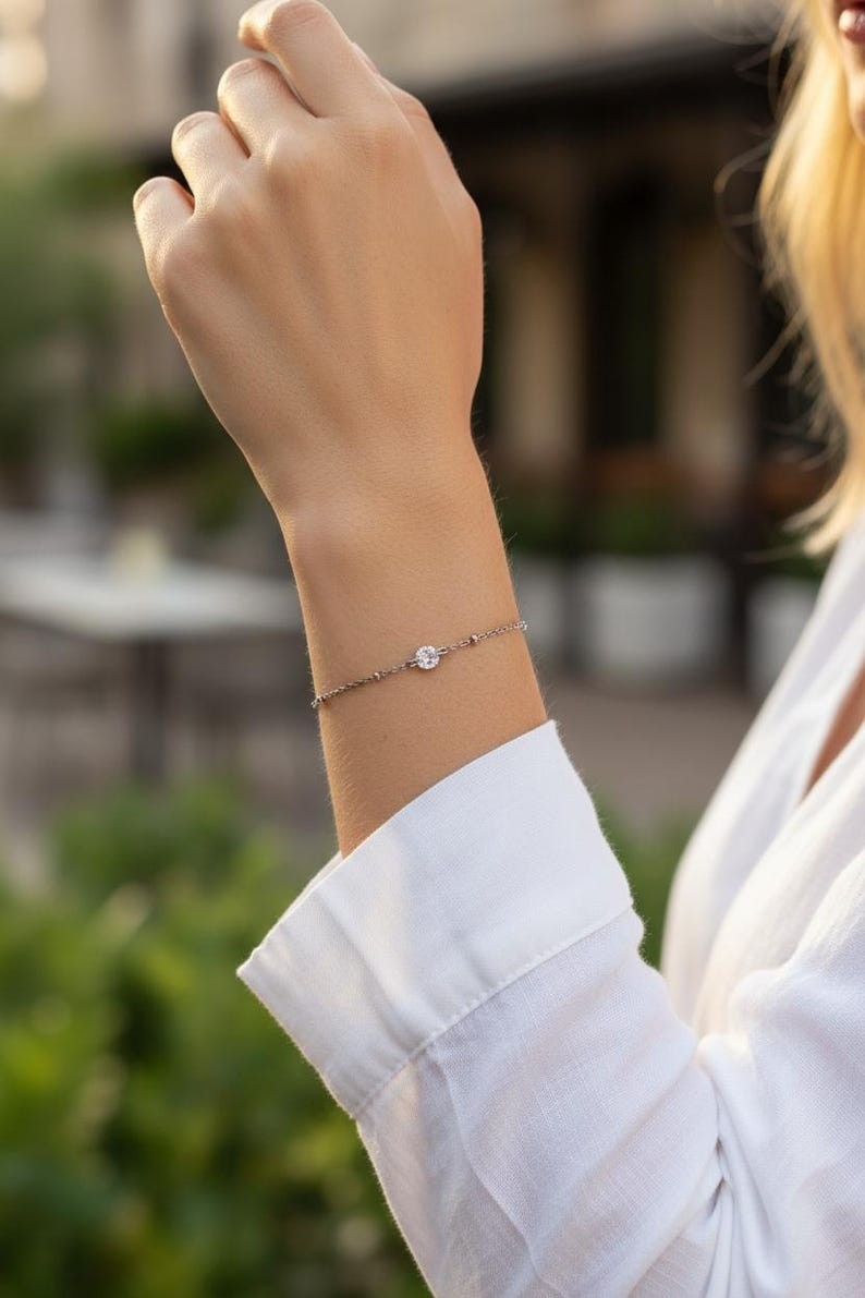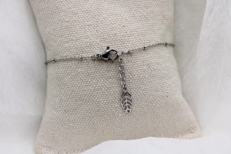 Voici un joli bracelet confectionné d’une fine chaîne argentée tendance.