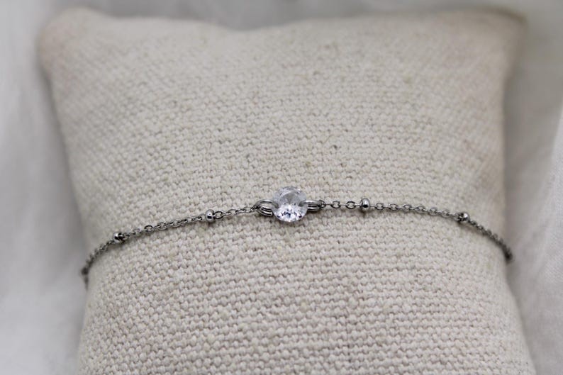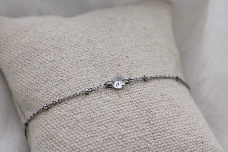 - Fine chaîne satellite perlée ornée d’un petit pendentif de 6mm en cristal de swarovski