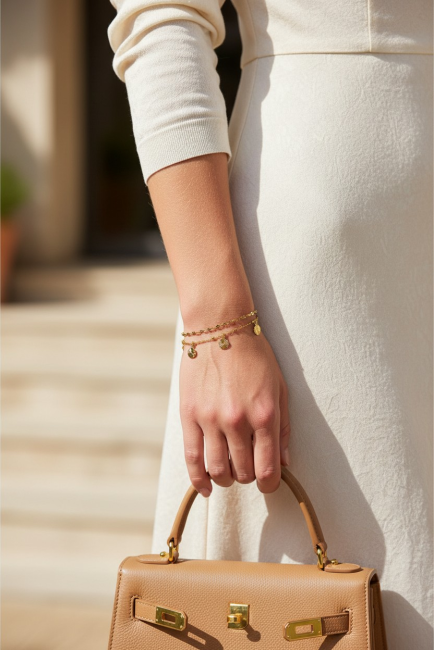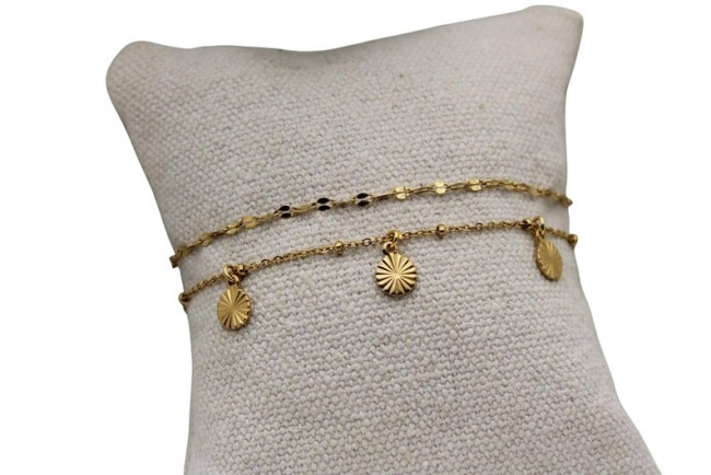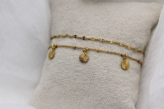 Voici un joli duo de bracelets confectionné de 2 fines chaînes tendances dorées.