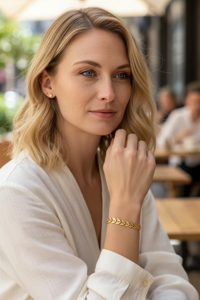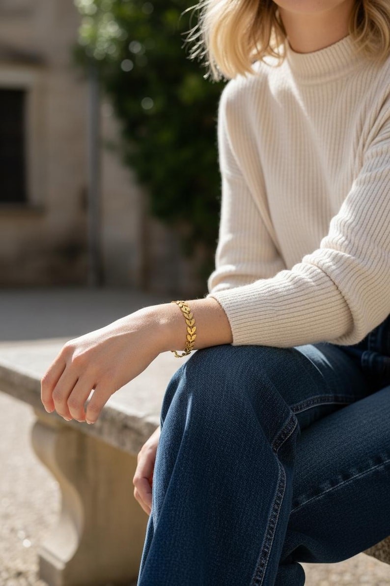 Superbe bracelet doré esprit bohème avec ces épis de blé chevron .