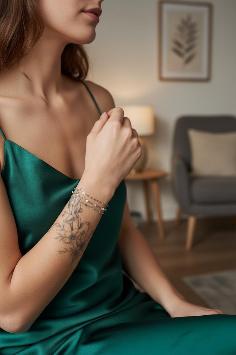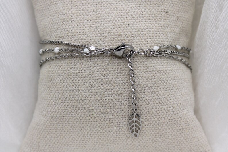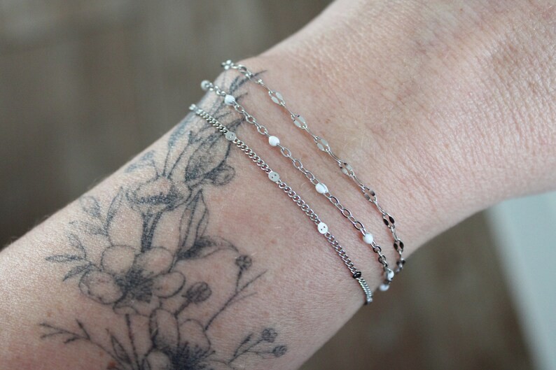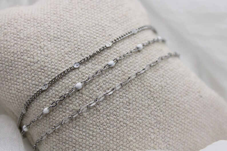 Voici un joli trio de bracelets confectionné de 3 fines chaînes argentées tendances.