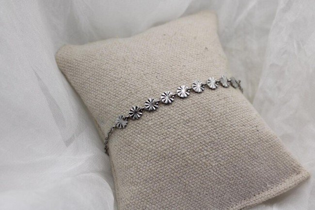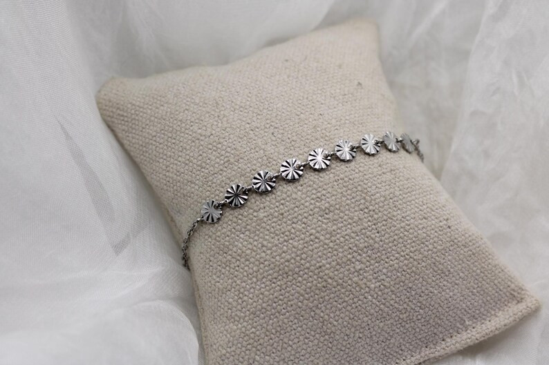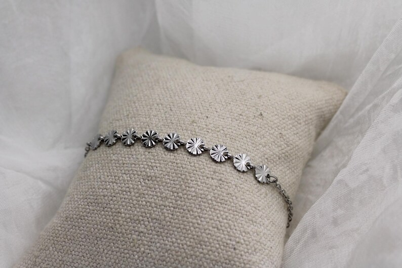 • Chaîne classique ornée de cercles ronds ciselés en acier inoxydable argent
