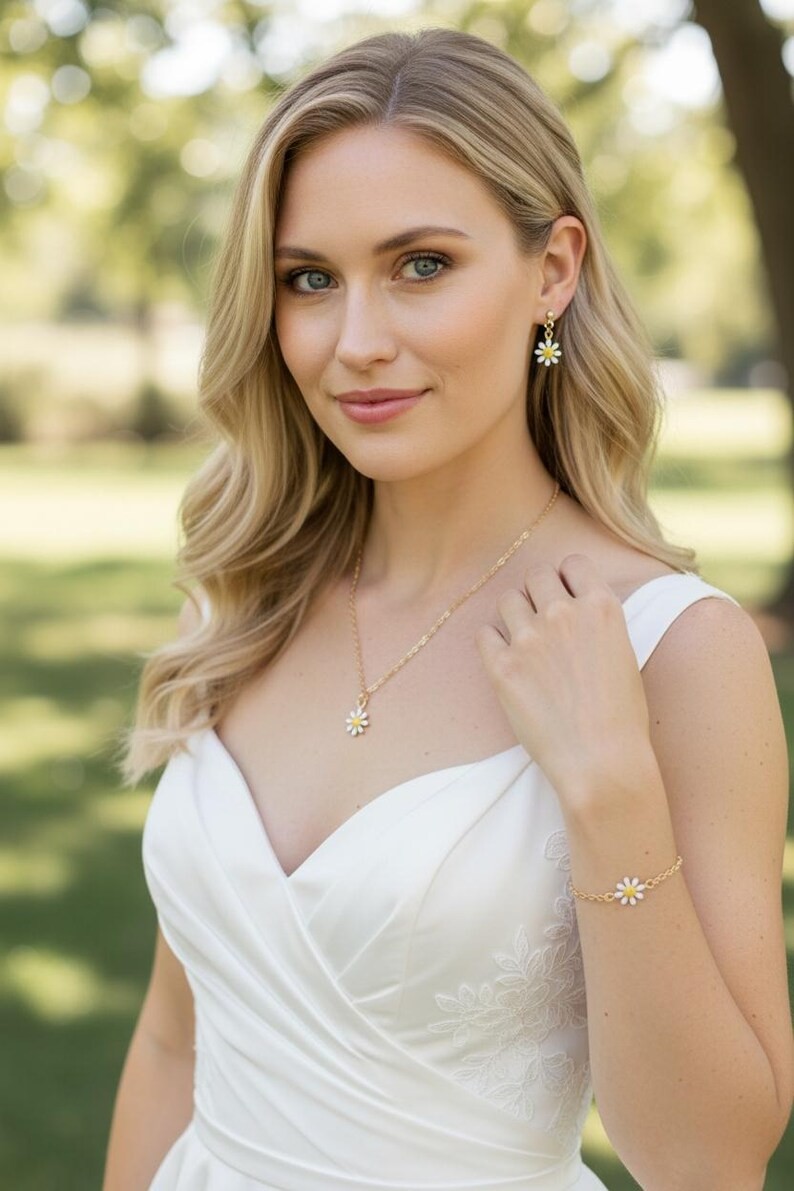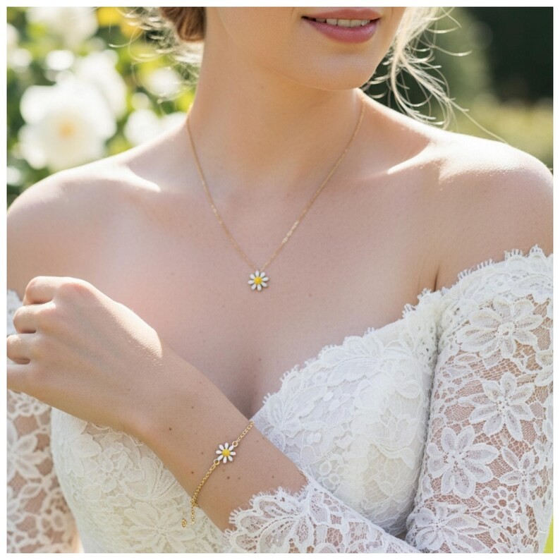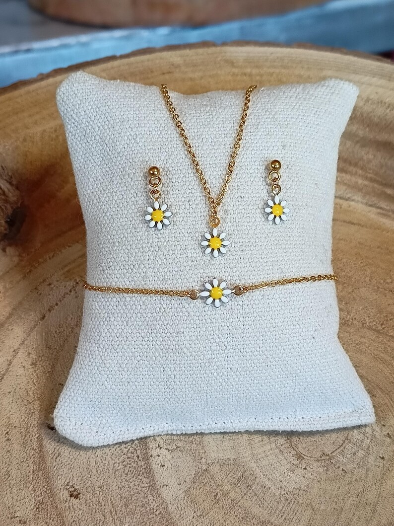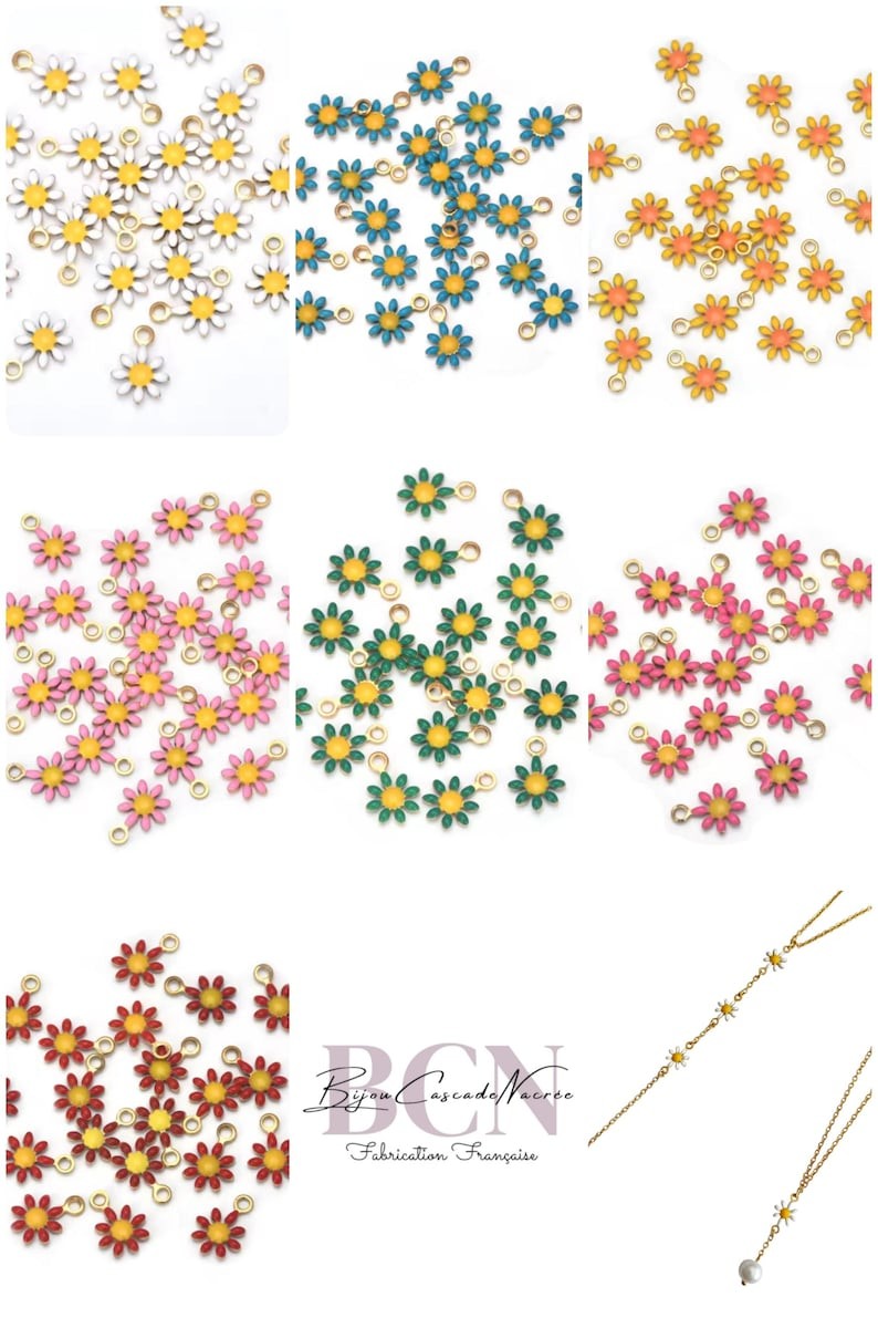 - Petites fleurs marguerites émaillées doré en acier inoxydable