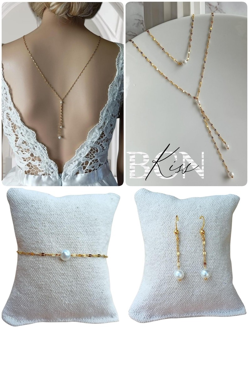collier de dos, bracelet et boucles d'oreilles assorties
